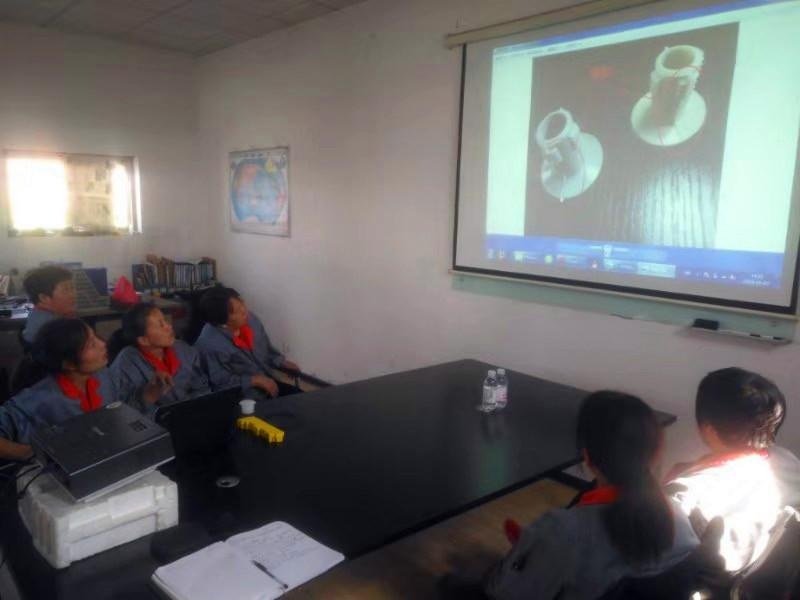 Quality assurance is the cornerstone of our product excellence. Recently, our QA specialist Dora Du was on-site, explaining to workers the specific requirements for trimming flash and the quality standards of rubber parts, as shown in the picture.